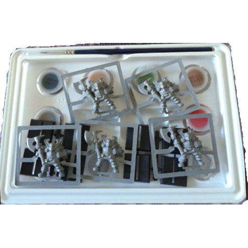 5 figures, 6 paints, guide and brush. |